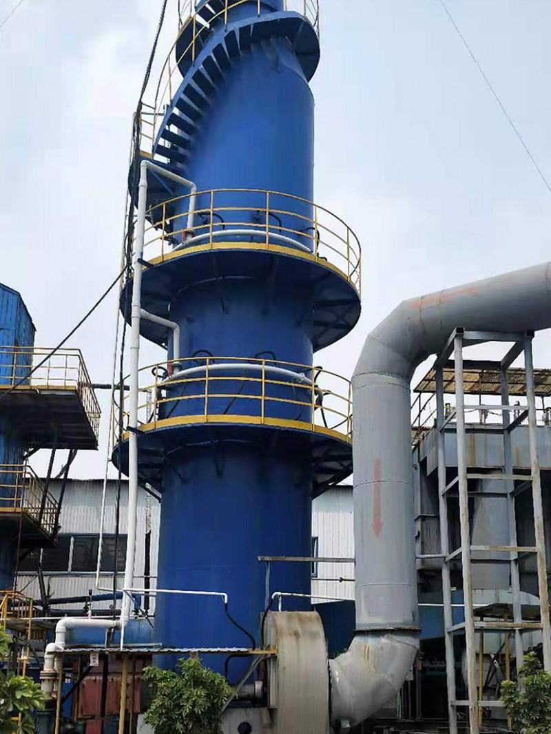 鈉-鈣雙堿法采用火堿吸收SO2 ,石灰還原再生,再生后吸收劑循環(huán)使用,無(wú)廢水排放。窯爐煙氣經(jīng)除塵器除塵后進(jìn)入脫硫塔,并與脫硫液中的堿性脫硫劑在霧化區(qū)內(nèi)充分接觸反應(yīng),完成煙氣的脫硫吸收。